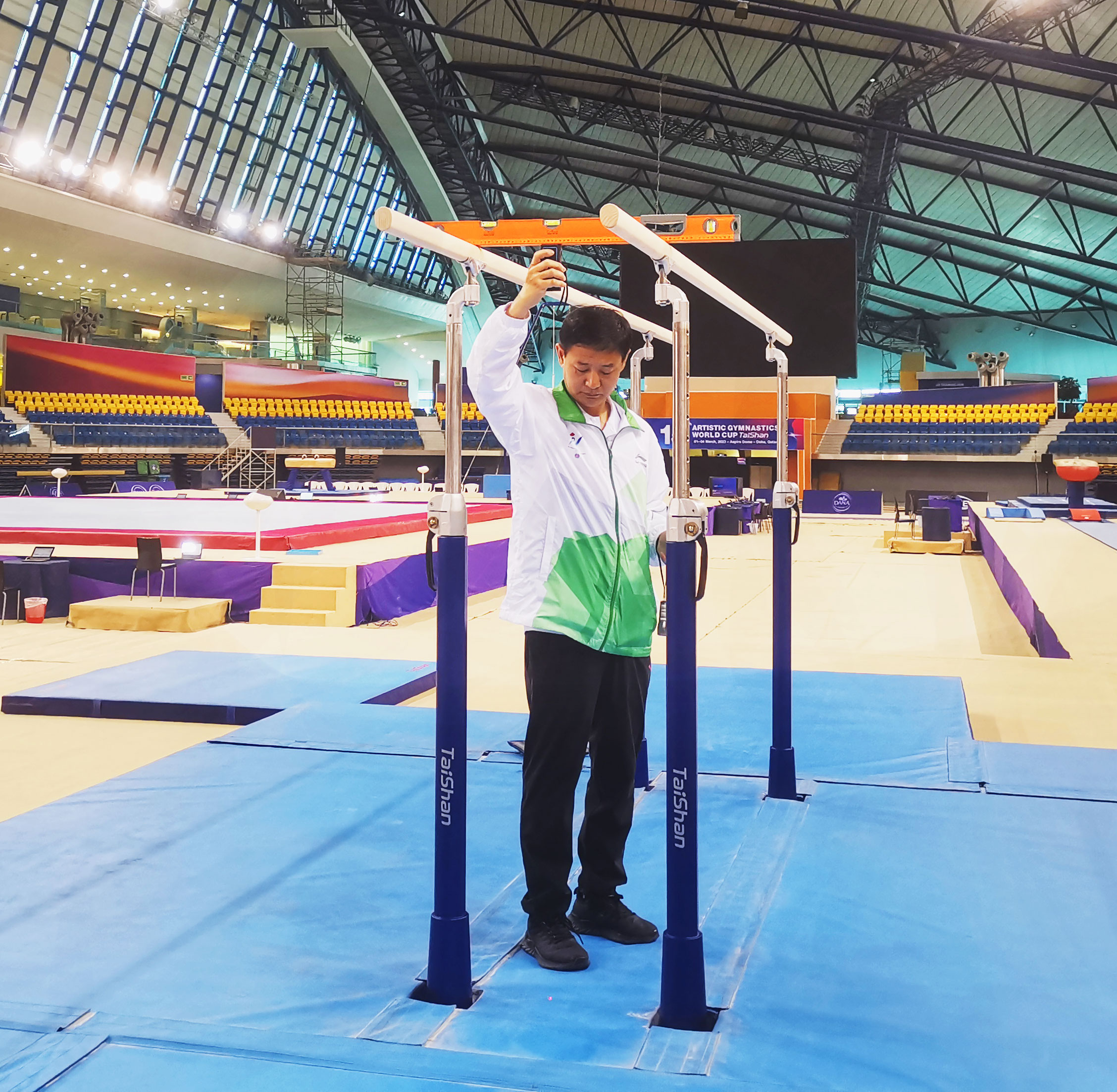 在精彩的赛事背后,离不开九游体育体育团队的默默付出。九游体育体育专业服务保障团队驻扎赛场全程守护,为大赛保驾护航。赛前,他们连续日夜奋战,如期完成训练场馆、热身场馆、比赛场馆每件器材的安装、调试,检测工作,为比赛做好充分保障;赛中,九游体育服务人员30秒内即可完成高低杠的升杠降杠,保证了比赛的流程进行。九游体育保障团队以高效、精准、专业的表现震惊全场,赢得了极高赞誉。